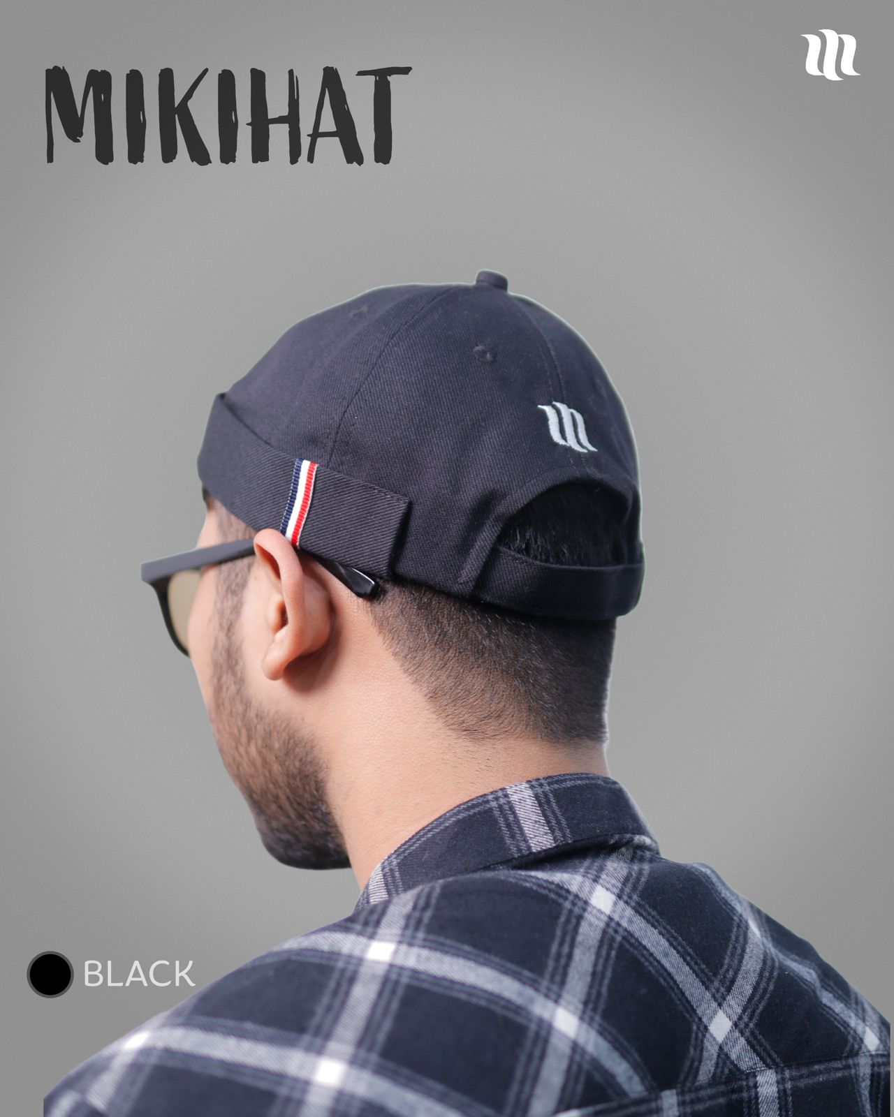 Topi miki hat adalah topi bergaya pelaut modern dengan bentuk bulat tanpa pinggiran lebar. Desainnya simpel namun ikonik, sering terlihat dalam fashion streetwear Eropa dan gaya kasual yang minimalis.